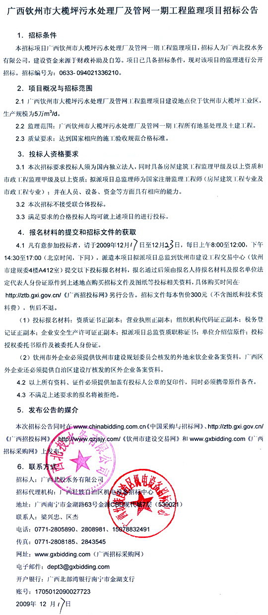 | 广西北投水务有限公司 “钦州市大榄坪工业区污水处理厂填海工程项目”海洋环境影响评价公众参与第二次公示信息 发布单位:北海市碧蓝海洋环境保护服务有限公司