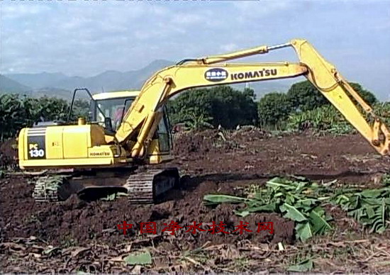 图为:施工人员正在对污水处理厂用地上的香蕉树进行清理。 |