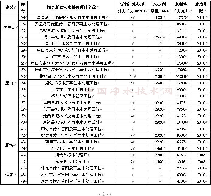 18 曹妃甸工业园区污水及再生利用工程 唐山市 地级市 10.0 8500 50.0 8000 海河流域 |